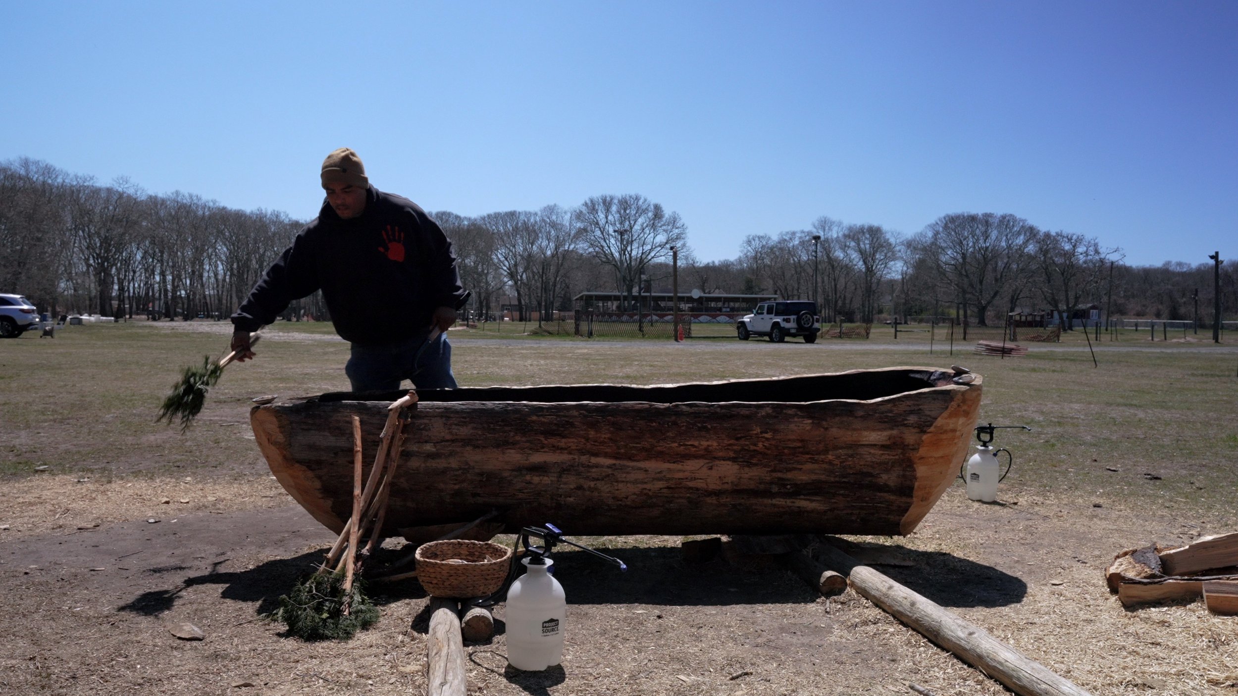 Shinnecock tribal member, cultural preservationist, and activist Chenae Bullock leads the building of a Mishoon (a traditional dugout canoe) on her home territory with the help of her family, teachers, and community members.